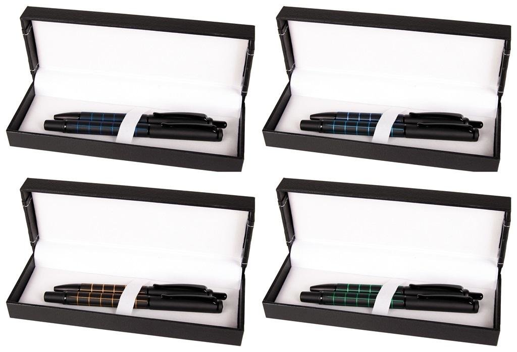 Miks wzorów, towar wysyłany losowo. Cena za sztukę.Model zestawu piśmiennego DORIAN w ponadczasowej, czarnej kolorystyce z kolorową kratą. Kolekcja obejmuje pióro wieczne ze stalówką irydową oraz długopis. Pióro wieczne ze stalówką irydową zasilane standardowymi nabojami atramentowymi. Długopis...