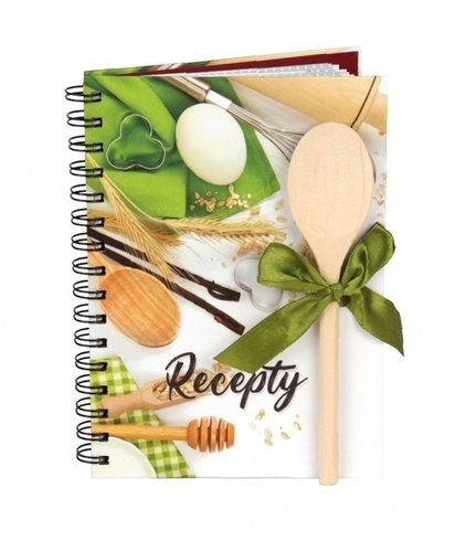 Nowe książki na przepisy z łyżką zawierają zupełnie nowe opracowanie stron wewnętrznych. Strony są w linie, bez podpisów. Co 8 kartek jest oddzielone papierowym przekładnikiem, który można opisać rodzajem przepisu. Książka zawiera łącznie 10 przekładek. Książka z boczną podwójną spiralą i bardzo wysokiej jakości twardymi okładkami jest doskonałym prezentem dla pasjonatów gotowania, którzy chcą zachować swoje najlepsze przepisy. Na przednich okładkach wstążką przymocowana jest drewniana łyżka, którą można używać podczas gotowania, zamiast niej można przymocować np. ołówek do pisania przepisów.
