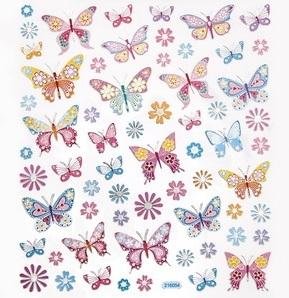 Arkusz kolorowych naklejek z motywem kolorowych motyli.Doskonałe do zdobienia projektów scrapbookingowych, kartek okolicznościowych, pakowania prezentów, a także do wszelkiego rodzaju dziecięcej aktywności twórczej._x005F_x000D__x005F_x000D_Pakowanie: 10 szt / inner przeczytaj całość