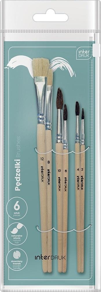 Zestaw 6 drewnianych pędzelków o różnych szerokościach i kształtach końcówek. Praktyczne etui z zamknięciem strunowym. Naturalne włosie. Trzonek z naturalnego drewna. przeczytaj całość