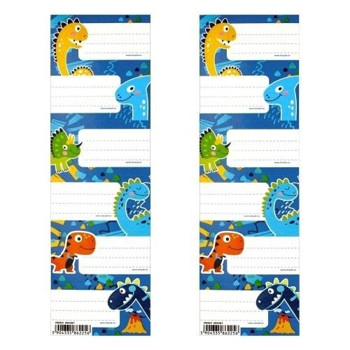 Opakowanie zbiorcze 25 sztuk. Mix wzorów.aklejki dostępne w kilku wzorach Dino, na listku znajduje się 6 naklejek, naklejki pozwalają na opisanie zeszytów szkolnych, dzięki czemu unikniemy pomyłek przy pakowaniu tornistra do szkoły. Zestaw kolorowych naklejek na zeszyty z wizerunkami ulubionych...