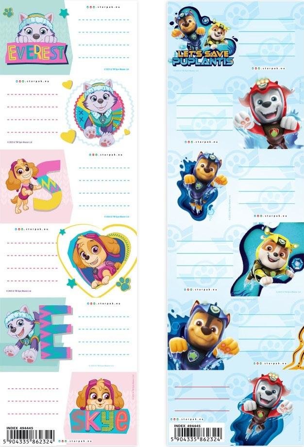 Zestaw kolorowych naklejek na zeszyty z wizerunkami ulubionych bohaterów Psiego Patrolu z kolekcji Starpak. Naklejki dostępne w dwóch wersjach kolorystycznych oraz kilku wzorach. Na listku znajduje się 6 naklejek. Naklejki pozwalają na opisanie zeszytów szkolnych, dzięki czemu unikniemy pomyłek przy pakowaniu tornistra do szkoły.