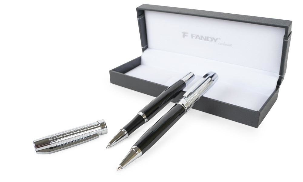 zestaw metalowego długopisu oraz rolleru, długopis z mechanizmem obrotowym, roller z wieczkiem, wymienny wkład F-Parker, grubość linii 0,7 mm (długopis), Ceramika, grubość linii 0,5 mm (roller), tusz w kolorze niebieskim, luksusowe pudełko przeczytaj całość