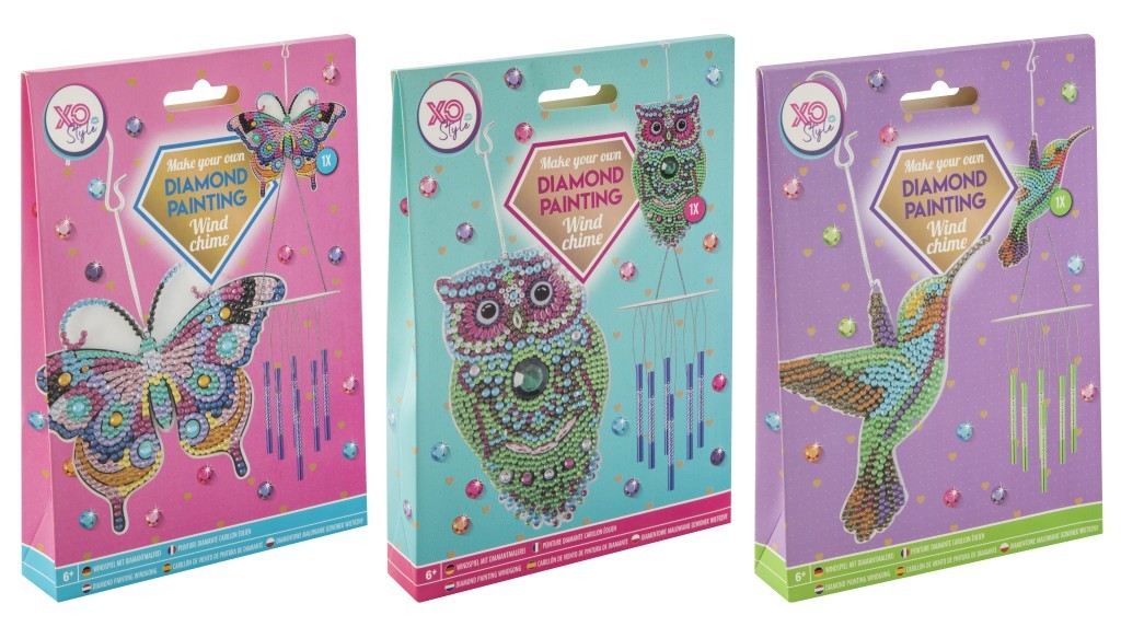 Dzwonek wietrzny z kamyczkami "diamond" - zawiera 1× zawieszkę, diamenty, 1 pędzelek do aplikacji, 1 kubeczek do wysypywania, 1 wosk, akcesoria do dzwonka wietrznego. W trzech wariantach: sowa, koliber i motyl. przeczytaj całość