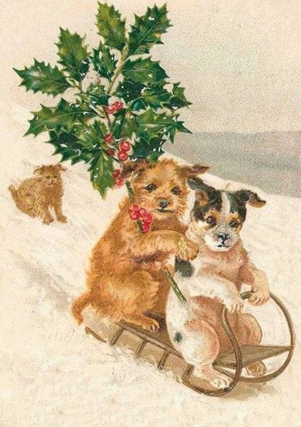 Karnet ST327 B6 + koperta Święta Pieski na sankach