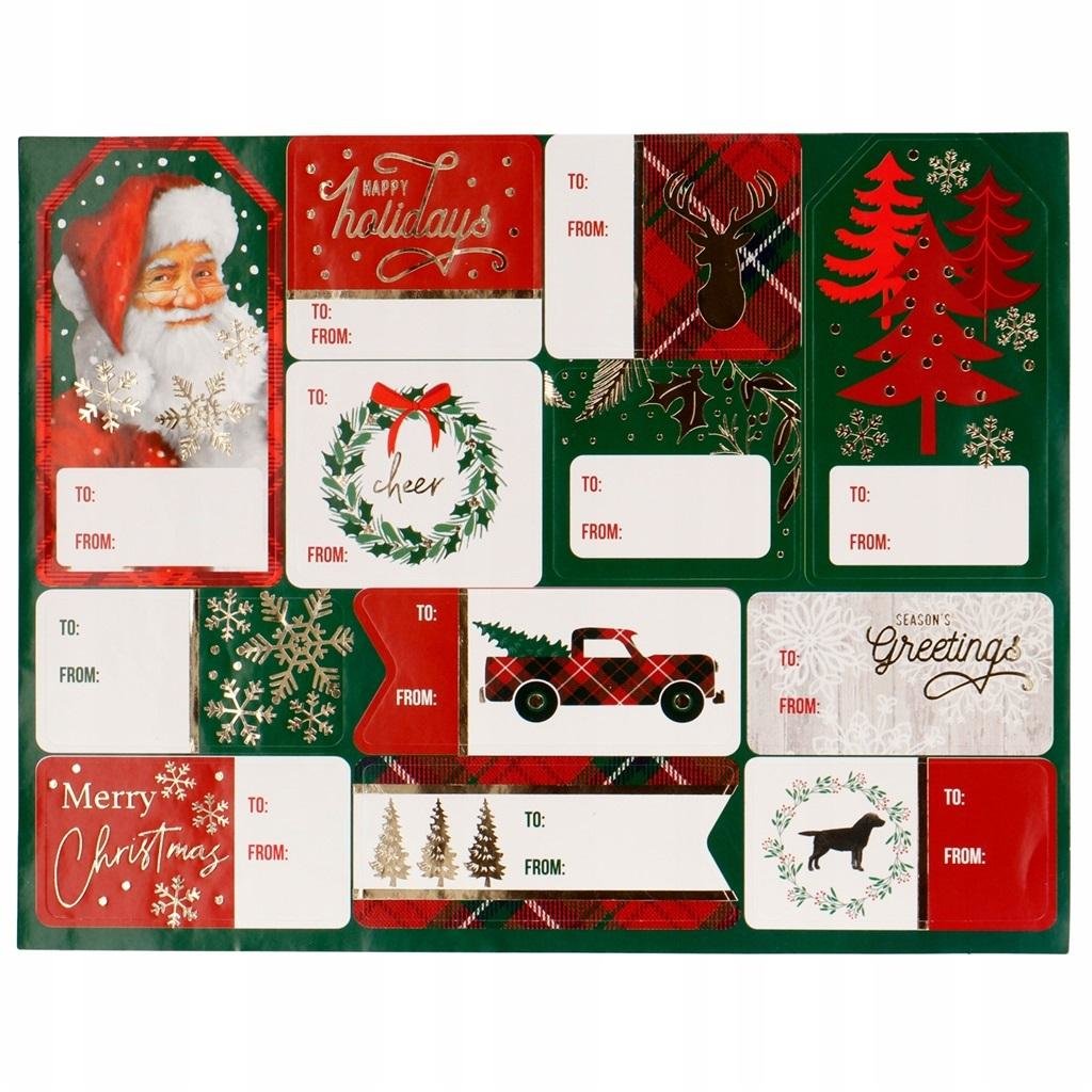 Naklejki do podpisywania prezentów zestaw naklejek świątecznych do podpisywania prezentów tradycyjne i klasyczne wzory i motywty 2 arkusze / w sumie 24 naklejki wymiar arkusza 15,5x20,5cm przeczytaj całość