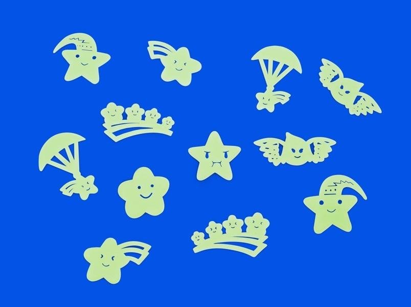 świecące naklejki do dekoracji, materiał sam absorbuje energię świetlną w ciągu dnia i dzięki temu może świecić w nocy, 12 szt. przeczytaj całość