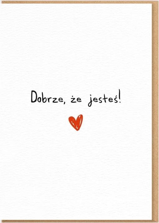 Miłość można wyrażać na różne sposoby. Jednym z nich jest radosny okrzyk: Dobrze, że jesteś!. Z myślą o nim stworzyliśmy uniwersalną kartkę okolicznościową, która topi wszystkie lody!Kartka okolicznościowa DOBRZE, ŻE JESTEŚ to idealny pomysł na prezent dla przyjaciela, członka rodziny lub...