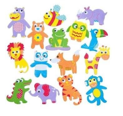 Drukowane naklejki z pianki z motywami zwierząt, w kilku wzorach i kolorach.