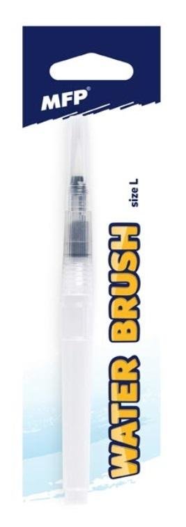 Pędzel okrągły z delikatnym syntetycznym włosiem w rozmiarze M, z pojemnikiem na wodę, który utrzymuje pędzel zawsze wilgotny. Pędzel przepuszcza wodę ze zbiornika do włosia. Jest odpowiedni do malowania farbami akwarelowymi i wodnymi. Wystarczy napełnić zbiornik wodą i można zacząć tworzyć. Zbiornik można w łatwy sposób odkręcić i napełnić ponownie. Jest to wygodne zwłaszcza przy malowaniu w plenerze lub podczas podróży. Nie trzeba mieć ze sobą kubka na wodę.