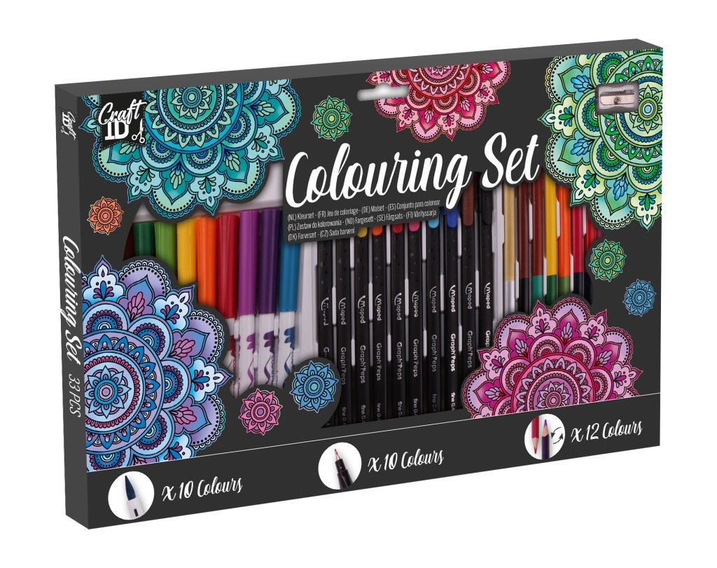 Malovací sada 33 ks – malovací sada obsahuje 10 fixů, 10× fixu se slabým hrotem a 12 oboustranných pastelek. przeczytaj całość
