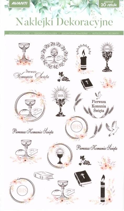 Naklejki dekoracyjne Pierwsza Komunia 20szt przeczytaj całość