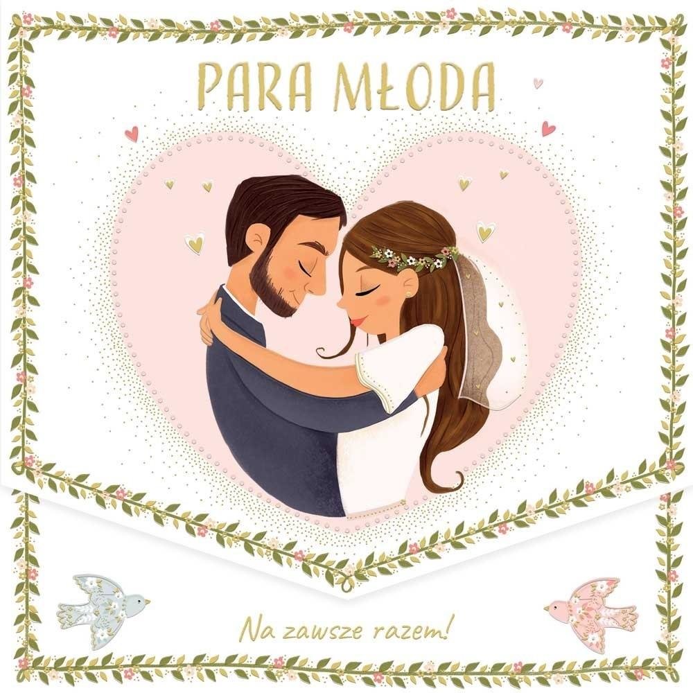 Karnet kwadratowy z kieszonką na, składany z trzech. Złocony i tłoczony, teksy życzeń w środku. Wydrukowany na wysokiej jakości papierze. W zestawie koperta. przeczytaj całość