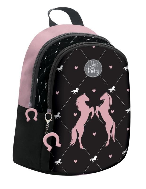 Mały plecak wycieczkowy, przedszkolny i do zerówki. Zdobiony modną grafiką, która przypadnie do gustu najmłodszym. Plecaczek posiada pojemną komorę główną, kieszeń przednią i boczne kieszonki na wodę lub bidon. Czarny plecaczek z różowymi akcentami przedstawiający konia to prawdziwy strzał w...