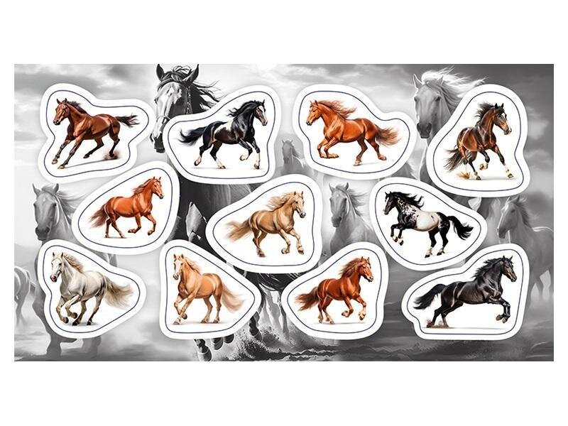 Zestaw naklejek do ozdoby zeszytów, albumów, listów, pocztówek ... 11 naklejek przepięknych koni rożnych maści w galopie POLECANE DO SZKÓŁ przeczytaj całość