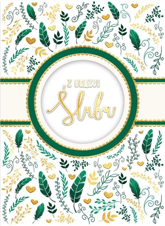 Karnet z kieszonką na pieniądze w formacie B6, składany z trzech. Złocony i tłoczony, teksy życzeń w środku. Wydrukowany na wysokiej jakości papierze. W zestawie koperta. przeczytaj całość