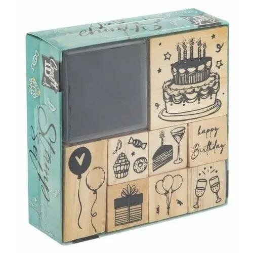 Pieczątki drewniane 8szt z kałamarzem