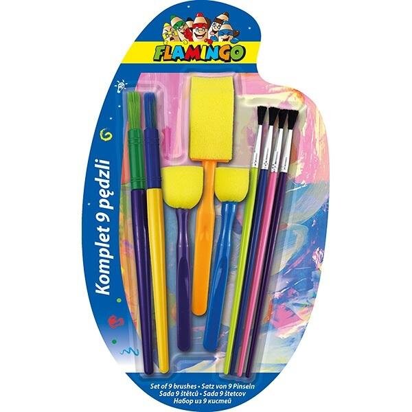 Zestaw pędzli 9szt.6x pędzli okrągłych syntetyczne włosie, 1x gąbkowy płaski szerokość 25mm, 2x gąbkowy okrągły O20/25mm przeczytaj całość