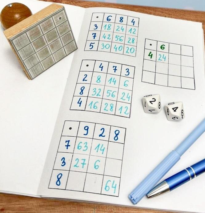 Do nauki, ćwiczenia i doskonalenia mnożenia.W zestawie dołączone są 2 kości do grywystarczy rzucić kośćmi, wylosować cyfry, wpisać w odpowiednie kratki oraz obliczyć wynik.Wymiary: 60mm x 60mm przeczytaj całość