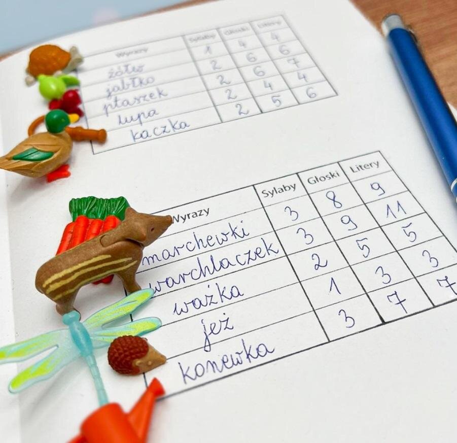 Do nauki, ćwiczenia i doskonalenia podziału słów na głoski litery i sylaby.Wymiary: 90mm x 60mm przeczytaj całość