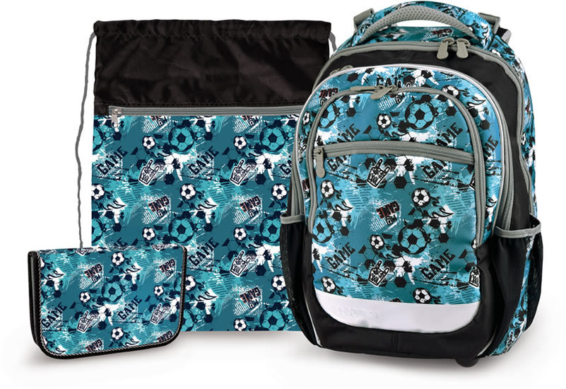 Školní set obsahující batoh, jednopatrový penál, sáček na cvičky przeczytaj całość