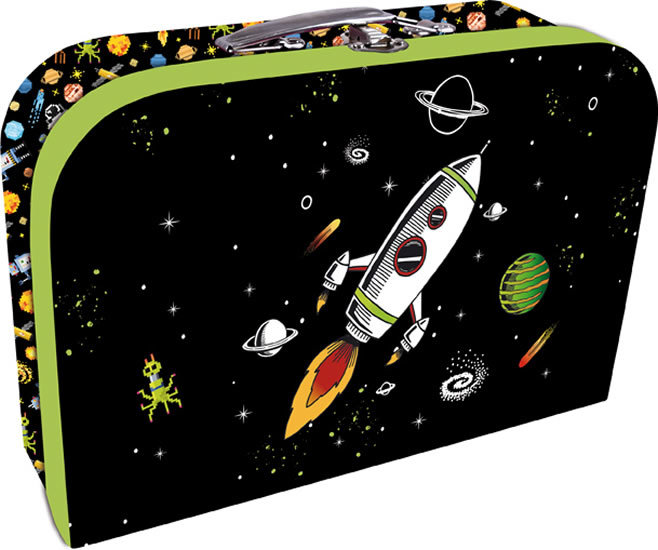Papírový dětský kufřík na výtvarné potřeby a jiné školní pomůcky. Standardní velikost 35 cm: 350 x 210 x 95 mm przeczytaj całość