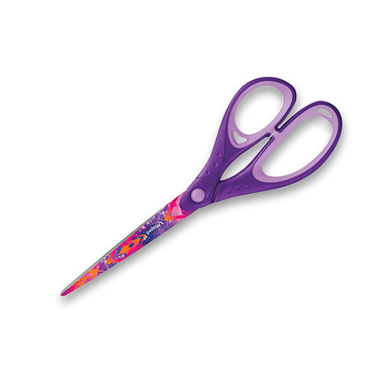 Nůžky dekorované speciálním lakem. Velikost 21 cm. Měkké asymetrické rukojeti. Dekorované čepele z broušené nerezové oceli. Mix barev. przeczytaj całość