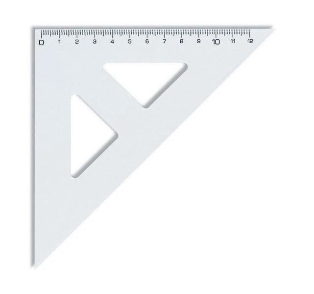 Trójkąt 45/141 z kreską do rysowania prostopadłych wykonany z przezroczystego polistyrenu. Nadruk skali jest odporny na ścieranie przy normalnym użytkowaniu. Dokładność skali 0,2% długości. Oprócz skali długości posiada również kreskę do konstruowania prostopadłych. Trójkąt przeznaczony do kreślenia i rysunku technicznego w szkole i w biurze. Zapakowany w torebkę polietylenową z zawieszką typu euro.