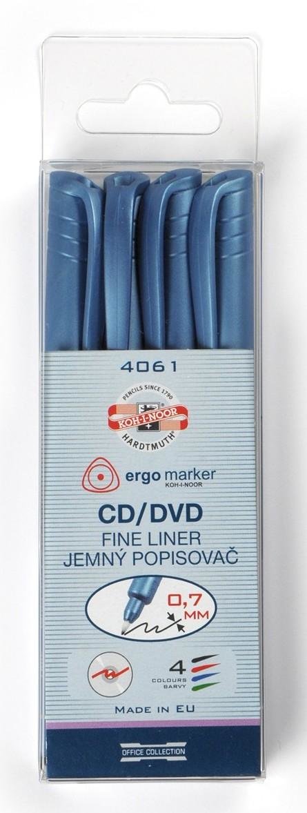 Popisovače plněné inkousty na alkoholové bázi, odstín červený, modrý, zelený, černý. Stopa písma je odolná otěru a působení vody. Jsou určeny k popisování CD, DVD a BD disků. V případě potřeby je možné popis odstranit lihem. Jsou osazeny jemně píšícími hroty s kuželovou objímkou a je možné psát šířkou stopy písma 0,7 mm, délka 1000 m. Baleny jsou v  soupravách po 4 ks v plastových krabičkách