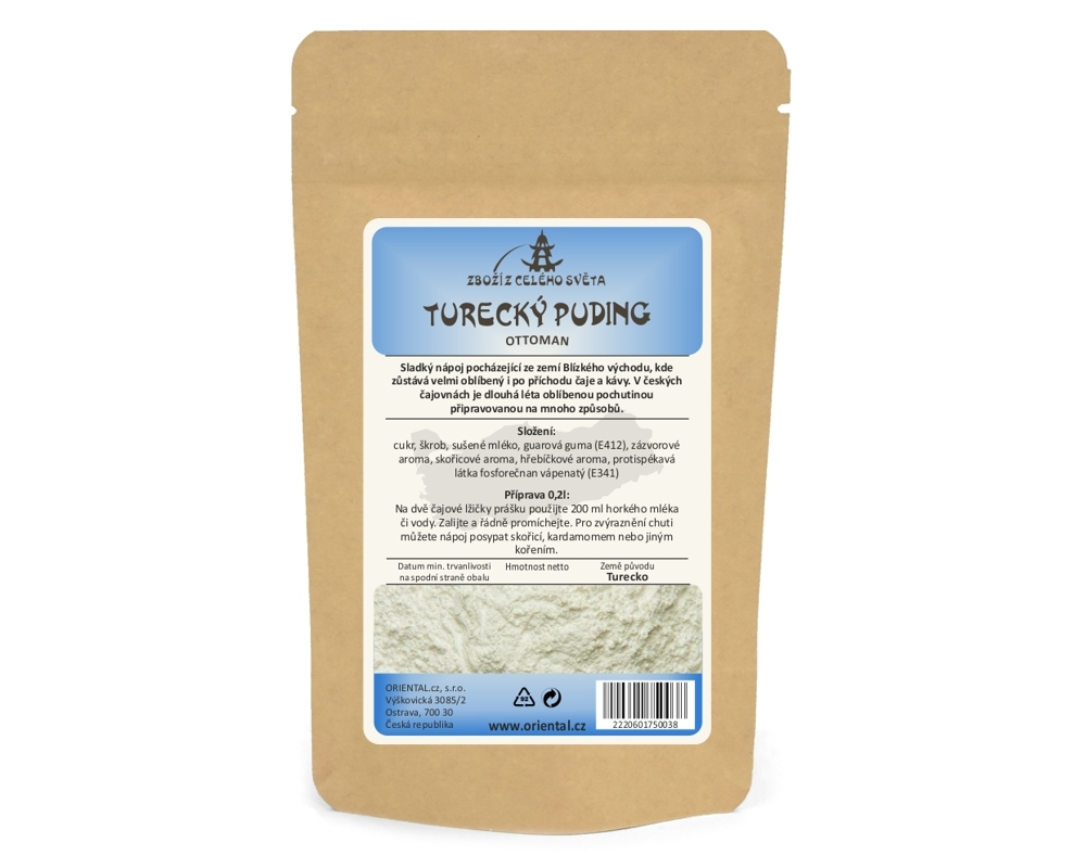 Turecký pudink značky Ottoman pro jednoduchou a rychlou přípravu. Stačí zalít a zamíchat.Postup přípravy: na dvě čajové lžičky prášku použijte 200 ml horkého mléka či vody. Zalijte a řádně promíchejte. Pro zvýraznění chuti můžete nápoj posypat skořicí, kardamomem nebo jiným kořením. Složení:...