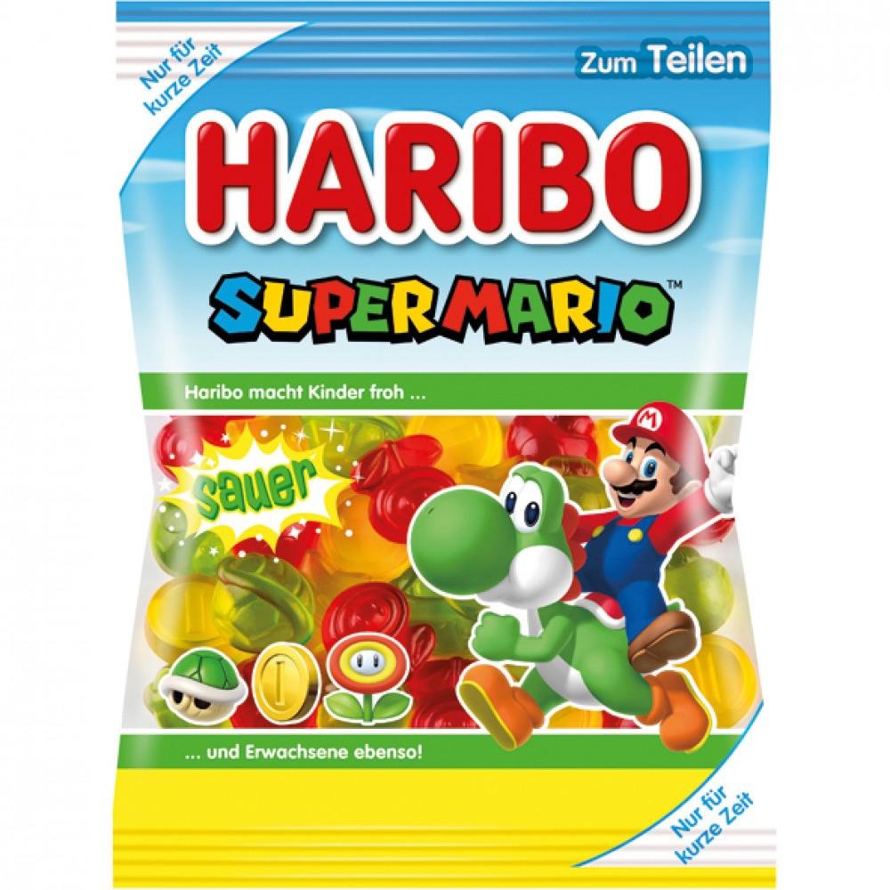 Balení 175 gr.Želé bonbóny Haribo s ovocnými příchutěmi ve tvaru postaviček z oblíbených her Super Mario.Složení: glukózový sirup, cukr, dextróza, želatina, kyselina citrónová, ovocné a rostlinné koncentráty (mrkev, spirulina, jablko, ibišek), aroma, leštící látky (včelí vosk, karnaubský...
