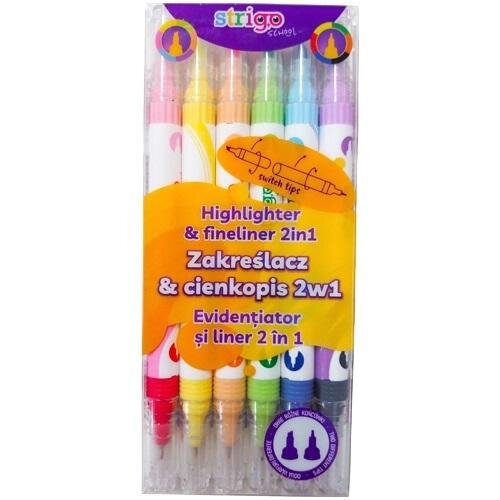 Zakreślacz i cienkopis 2w1 6 kolorów STRIGO