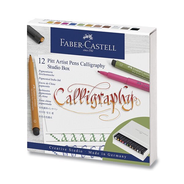 Zestaw pisaków artystycznych Faber-Castell Pitt Artist Pen w opakowaniu Studio Box 12 szt. ze ściętą końcówką C 2,5 mm do kaligrafii. Pisaki te to połączenie zalet tradycyjnych rysunków wykonywanych tuszem z nowoczesnym, łatwym w użyciu narzędziem. Tusz nadaje rysunkom wyrazistości i trwałości,...