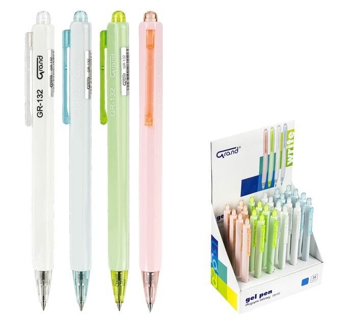 Długopis żelowy GR-132długopis automatyczny z wymiennym wkłademergonomiczna trójkątna obudowaindywidualny kod kreskowy w formie naklejki usuwalnej bez śladudługość pisania: 300 mgrubość linii 0,5 mmniebieski kolor tuszuopakowanie: 24 szt. przeczytaj całość