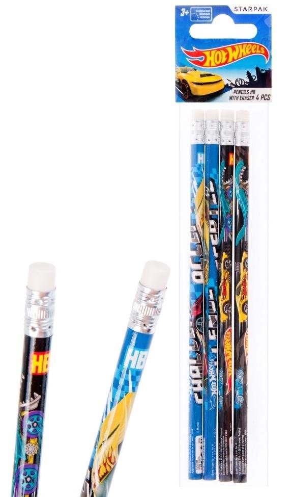 Ołówek z gumką Hot Wheels 4el