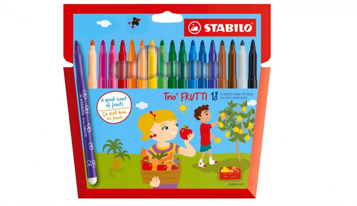 FLAMASTRY ZAPACHOWE STABILO TRIO FRUTTIFLAMASTRY ZAPACHOWE STABILO STWORZONE DLA DZIECI I MŁODZIEŻYKażdy kolor z odmienną nutą zapachową.Nadruki na obudowie podpowiadają zapach (np. cytryna - zapach cytrynowy). Nadruki na obudowie podpowiadaja zapach (np. cytryna - zapach cytrynowy).Dostępne w kompletach 12szt i 18szt.Kartonowe etui z zawieszką. 18 szt.