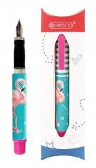 Cechy: - gumowy i profilowany uchwyt ułatwiający prawidłowe trzymanie pióra - zasilane standardowymi nabojami atramentowymi - pióro wieczne posiada stalówkę irydową o grubości M. Wzór widoczny na zdjęciu. Pióro zapakowane w kartonowe etui z zawieszką.