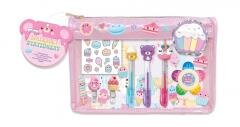 Zestaw zawiera: - kołozeszyt sketchbook - 3 długopisy żelowe z ozdobnymi nakładkami - arkusz naklejek - 2 klamerki z ozdobnymi nakładkami - pieczątki w rollerze w 5 kolorach i wzorach Zestaw zapakowany w ozdobną saszetkę zamykaną na zamek z uchwytem do wygodnego przenoszenia. Wiek: 5+ przeczytaj całość