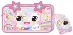 Zestaw zapakowany w ozdobną przezroczystą kosmetyczkę zapinaną na zamek, dodatkowo sznureczek do wygodnego przenoszenia, zawiera: - notesik z czystymi kartkami - klejące karteczki w 3 różnych kształtach - arkusz naklejek do dekorowania - długopis z przesypującym się brokatem Wiek: 5+ przeczytaj całość