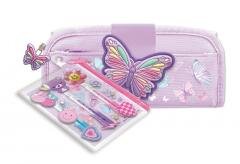 Rozkładany piórnik na przybory szkolne. Wiele przegródek i miejsca na drobiazgi, zamykany na rzep z ozdobą. Do piórnika dołączona jest przezroczysta saszetka zamykana na zamek z 3 mini długopisami żelowymi. Wiek: 5+ przeczytaj całość