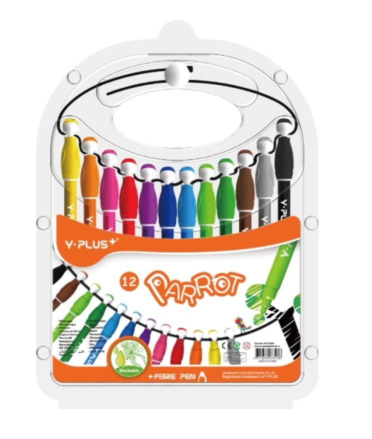PARROT. Flamastry na sznurku (gumce). Gruba, stożkowa końcówka do pisania - 12 sztuk. przeczytaj całość