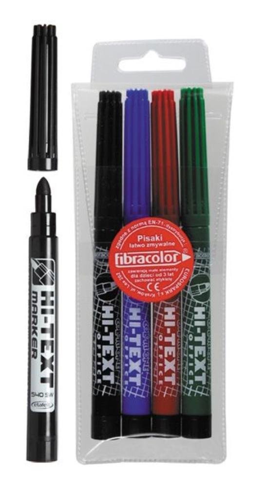 -mazak z okrągłą końcówką fibrową 6 mm,-kolorowy tusz o wyrazistych, czystych barwach na bazie wodnej,-łatwo zmywalny z rąk i materiałów,-bezpieczne zatyczki wentylacyjne zapobiegają wyciekaniu,-4 kolory w etui-bardzo długi okres użytkowania-firmowy nadruk-produkcja : Fibracolor Włochy. przeczytaj całość