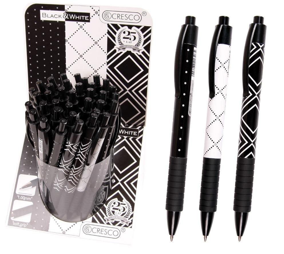 Długopis z wymiennym wkładem, mix wzorów.Grubość lini pisania 1,00 mm, gumowy uchwyt, atrament w kolorze niebieskim.36 sztuk w opakowaniu zbiorczym. przeczytaj całość