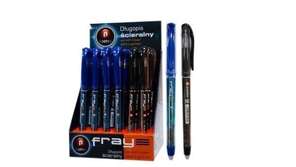 Długopis wymazywalny FRAY.Dwa kolory obudowy. Końcówka pisania 0,5 mm.Wkład wymienny. 24 sztuki w opakowaniu zbiorczym. przeczytaj całość
