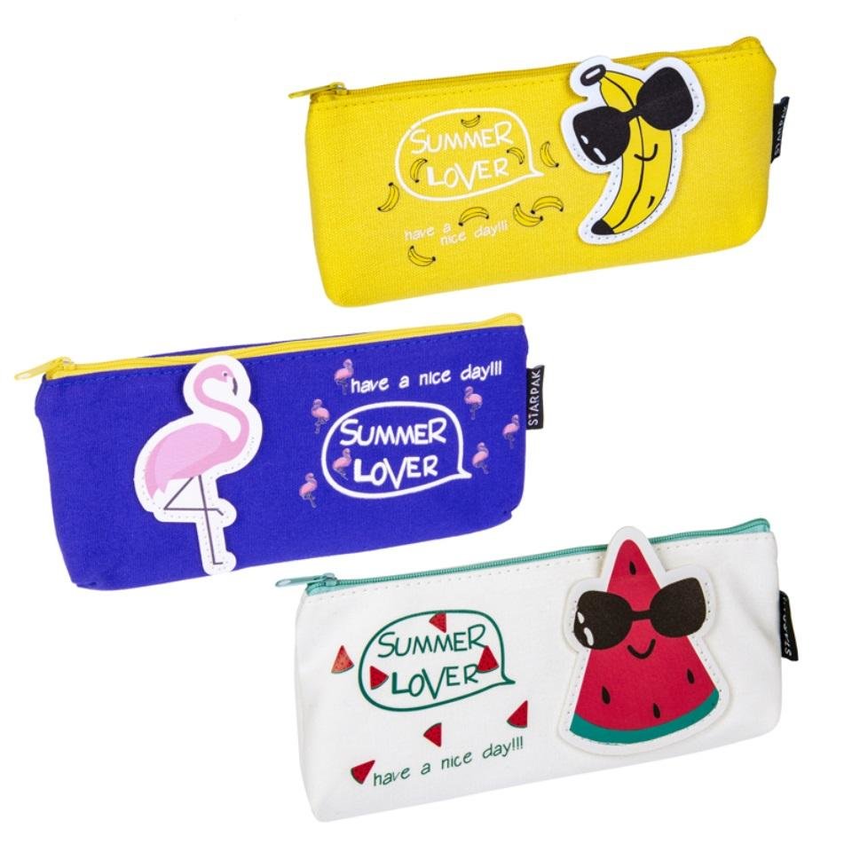 Mix wzorów. Towar wysyłany losowo.Piórnik w kształcie saszetki z kolekcji Starpak z zamkiem błyskawicznym. Piórnik pomieści niezbędne artykuły piśmiennicze i nie zajmie dużo miejsca w plecaku. Produkt dostępny w trzech młodzieżowych wersjach graficznych, przedstawiających letnie wzory z...