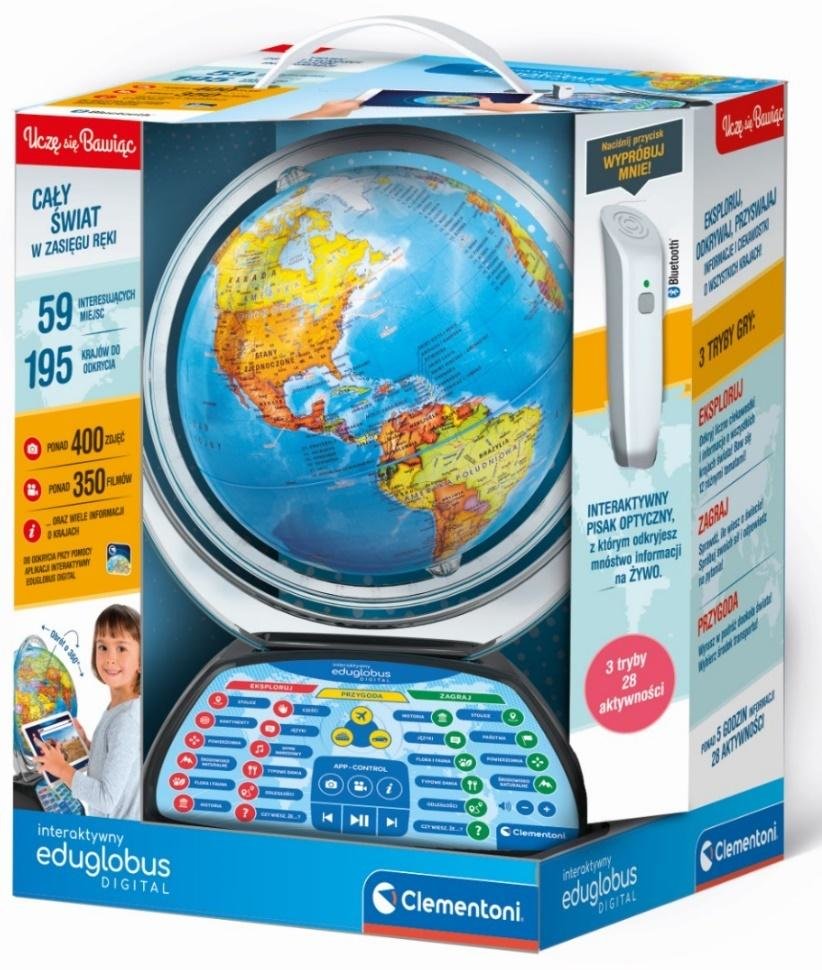 Nowy mówiący globus obraca się o 360, odsłaniając wszystkie zakątki świata. Niezliczone informacje i ciekawostki przedstawiają wiedzę geograficzną w innowacyjny i zabawny sposób!Za pomocą bezprzewodowego rysika poznasz kontynenty, stolice, powierzchnię, florę, faunę, hymny narodowe, języki,...