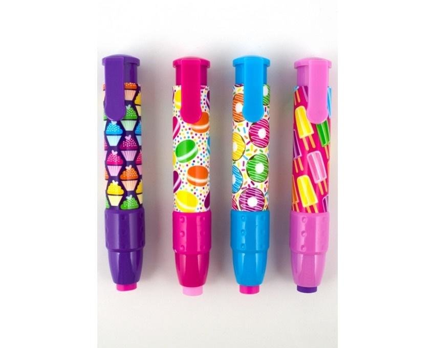 Gumki do ścierania ze słodkim akcentem. Co może być bardziej słodkiego niż lizaki, ciasteczka, babeczki i pączki? Mechaniczkne Gumki do Ścierania Słodycze to super zabawne i praktyczne gumki zamknięte w wytrzymałej, łatwej do trzymania plastikowej oprawie, która sprawia, że wycieranie ... jest...