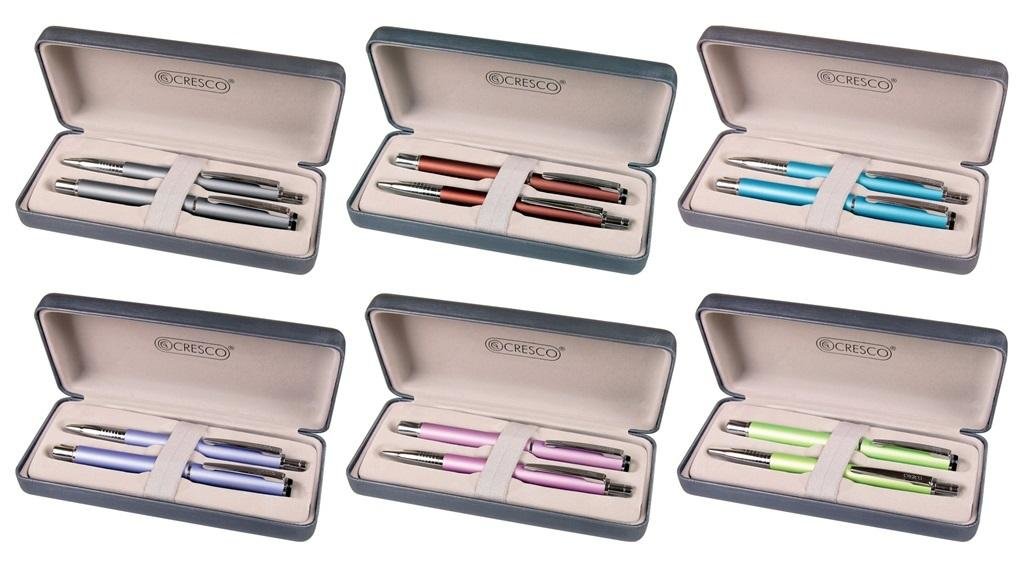 Klasyczny model znanego już zestawu piśmiennego Winner w kolorystyce pastelowej. Kolekcja obejmuje pióro wieczne z stalówką irydową oraz długopis z wkładem wielko pojemnościowym, niebieski 1mm. Zarówno pióro wiecznie jak i długopis pakowane są osobno w dpy 12szt natomiast jako zestawy w etui 28, 32, 34, 38, ES oraz ES/37