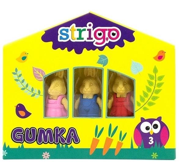 Gumki do ścierania grafitu. Bardzo dobrze ścierają, nie pozostawiając przy tym śladów.Gumki są wielokolorowe i mają kształt królików, przez co na pewno dodadzą uroku każdemu piórnikowi. przeczytaj całość