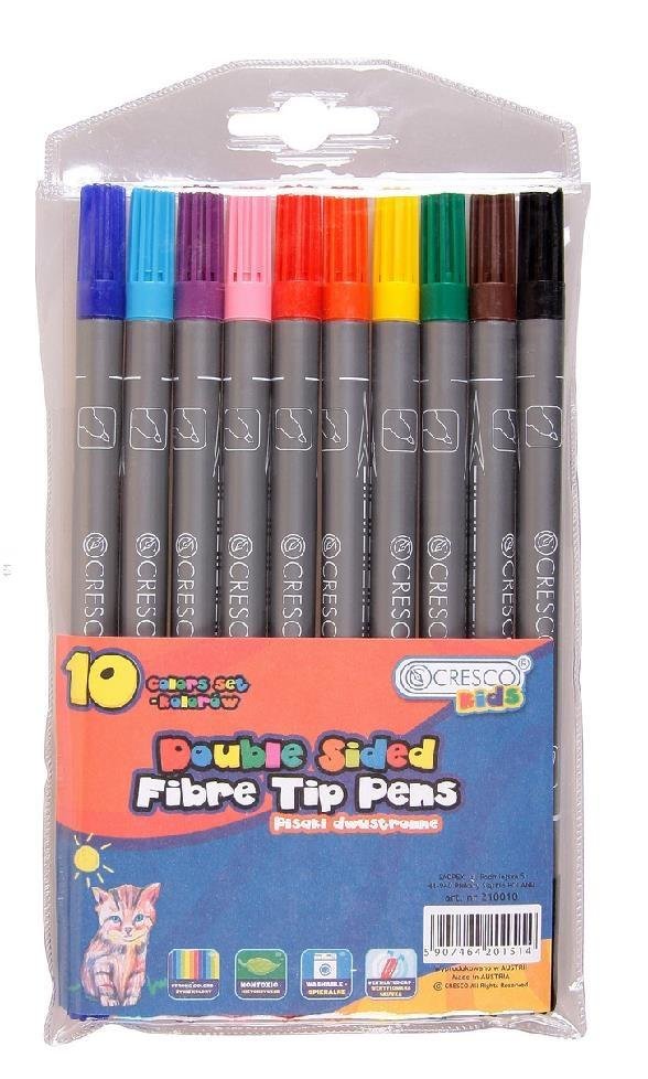 Pisaki dwustronne CRESCO charakteryzują się bardzo wysoką jakością, którą potwierdzają intensywne kolory, atrament nietoksyczny wyprodukowany na bazie wody oraz wentylowana skuwka, zapewniająca dłuższe użytkowanie produktu.Pisaki posiadają dwie grubości końcówek: cienką do dokładnego kreślenia...